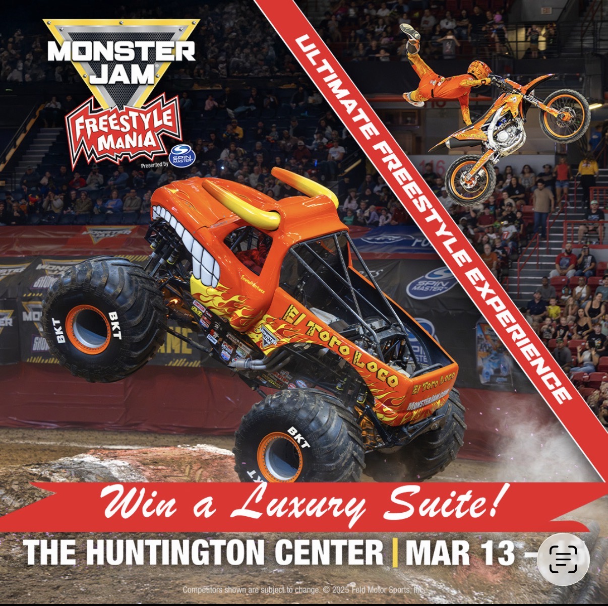 20 tickets to the Monster Jam show at The Huntington Center in Suite 106